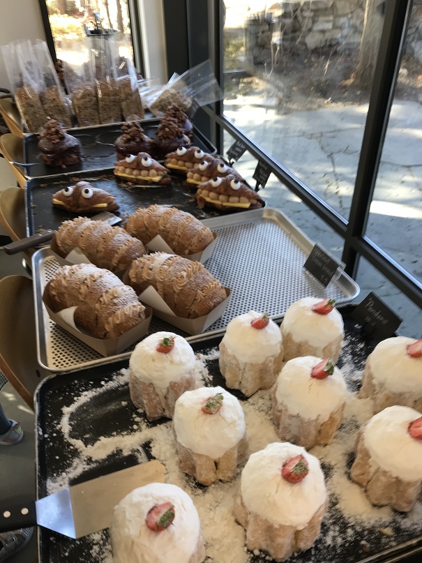 빵들이.. 일단 과일들이 듬뿍인데다가.. 크기고 제가 일반 동네 빵집에서 보던 크기와는 다르답니다.. 일단 엄청 커요... 솔직히 빵 하나만 먹어도 배부를 것 같아요.. 망고든 딸기든 무화과 빵이든.. 일단 과일은 아낌 없이 넣고 만든 것 같아요...