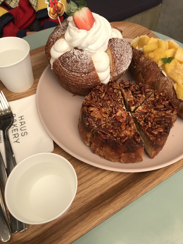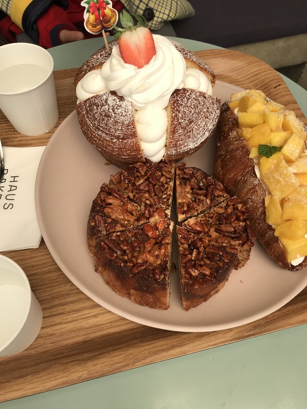 과일을 좋아하니.. 딸기 들어간 크림 빵.. 망고 듬뿍 올려진 크로아상... 그리고 아래쪽에 있는건.. 호두파이?일까나..