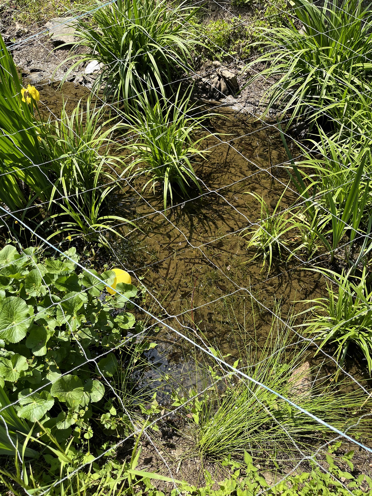 바로 아이들에게 가장 인기있는 장소인 올챙이 연못이에요. 너무 깊이 들어가지는 못하게 아래처럼 그물이 쳐져 있긴했지만, 연못 주변에서 쉽게 올챙이를 관찰하고, 실제 잡기도 가능했어요.