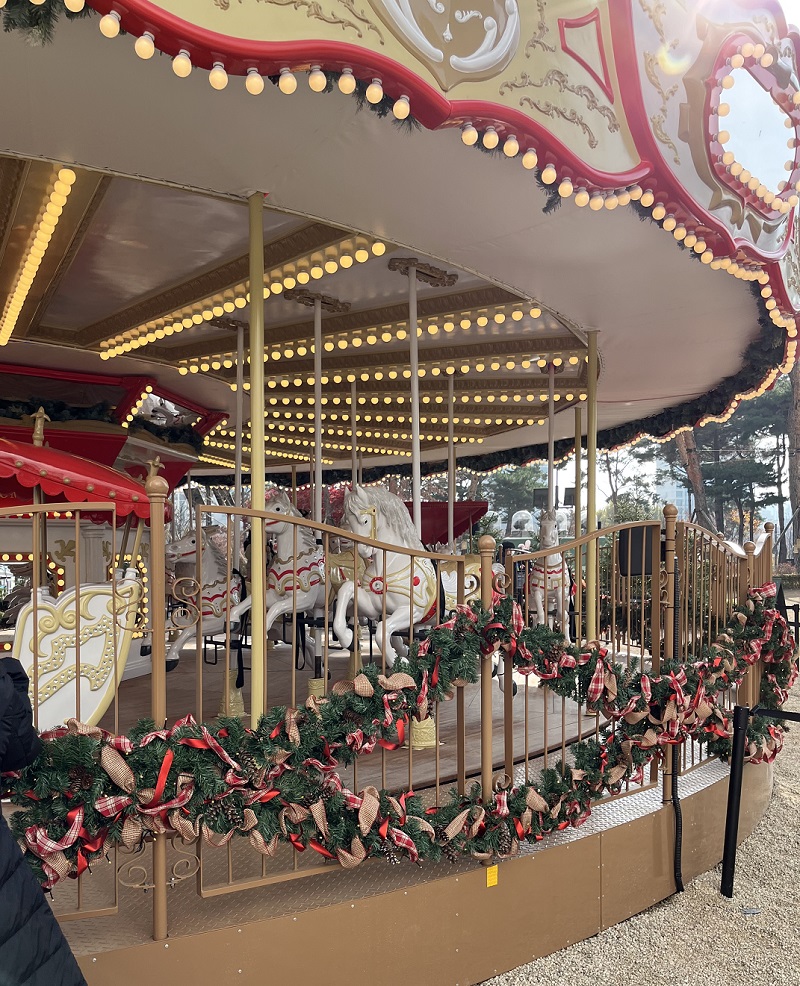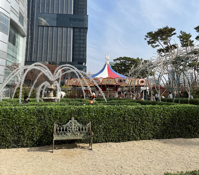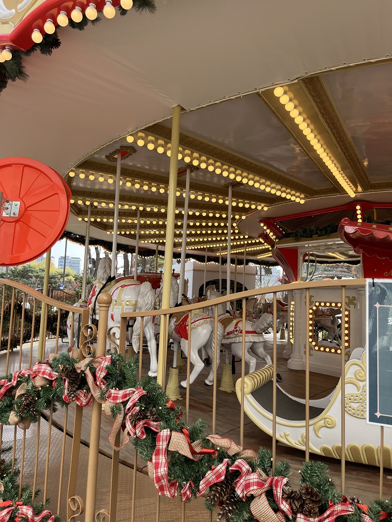 잠실롯데월드 몰 앞에 넓은 잔디 광장이 있잖아요? 거기에 꽤나 큰 규모의 회전목마를 떡 하니 갔다 놓았더라구요.