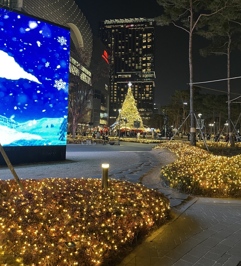 회전목마와 미로정원 그리고 그 옆에는 저렇게 높은 크리스마스 트리가 있어요. 이 시간에 롯데월드몰 주면을 거닐고 있으면 캐롤 음악도 나오고. 옛날의 나홀로집에 영화의 크리스마스 느낌이 나더라구요... (나홀로집에라니. 너무 올드하나요. ㅎㅎ)